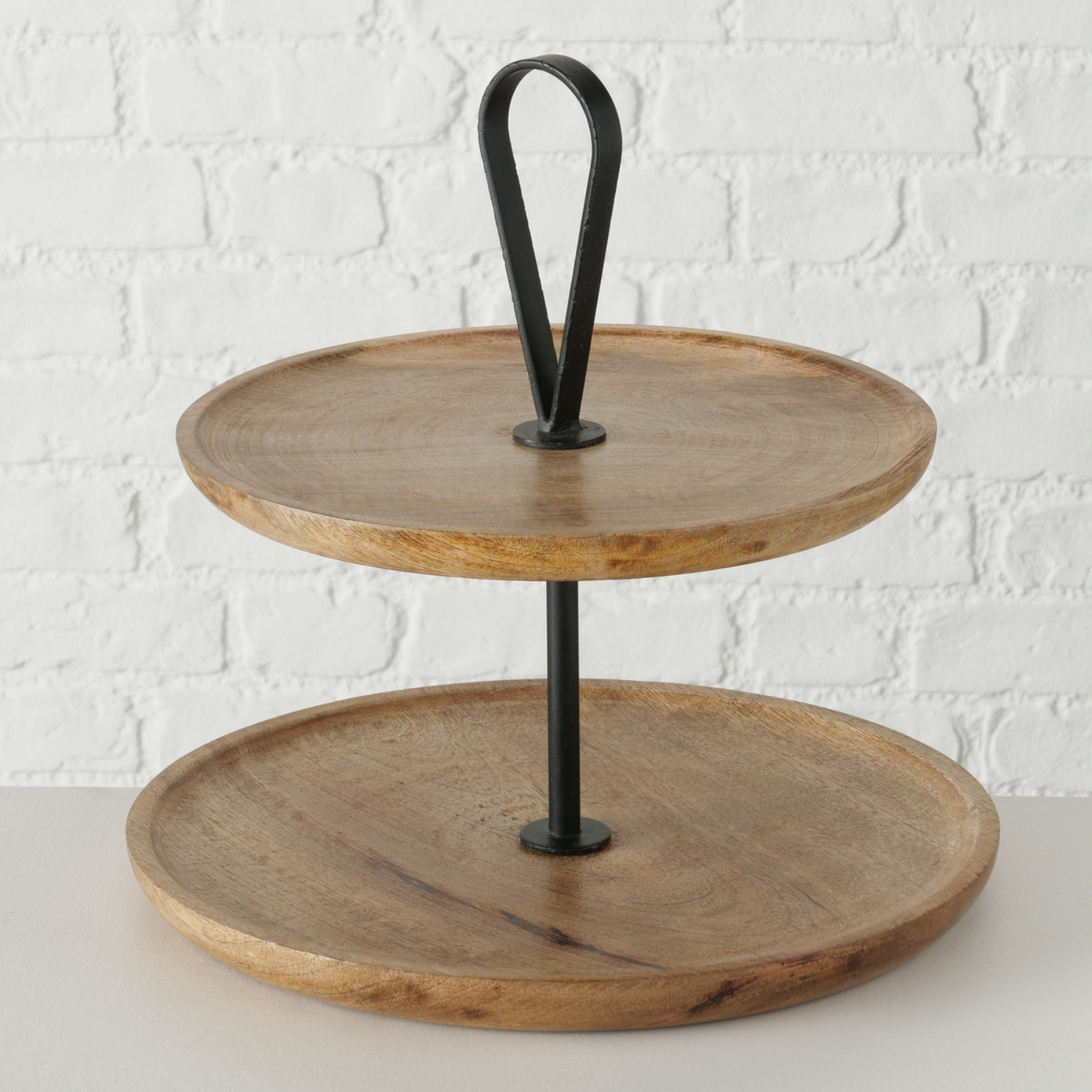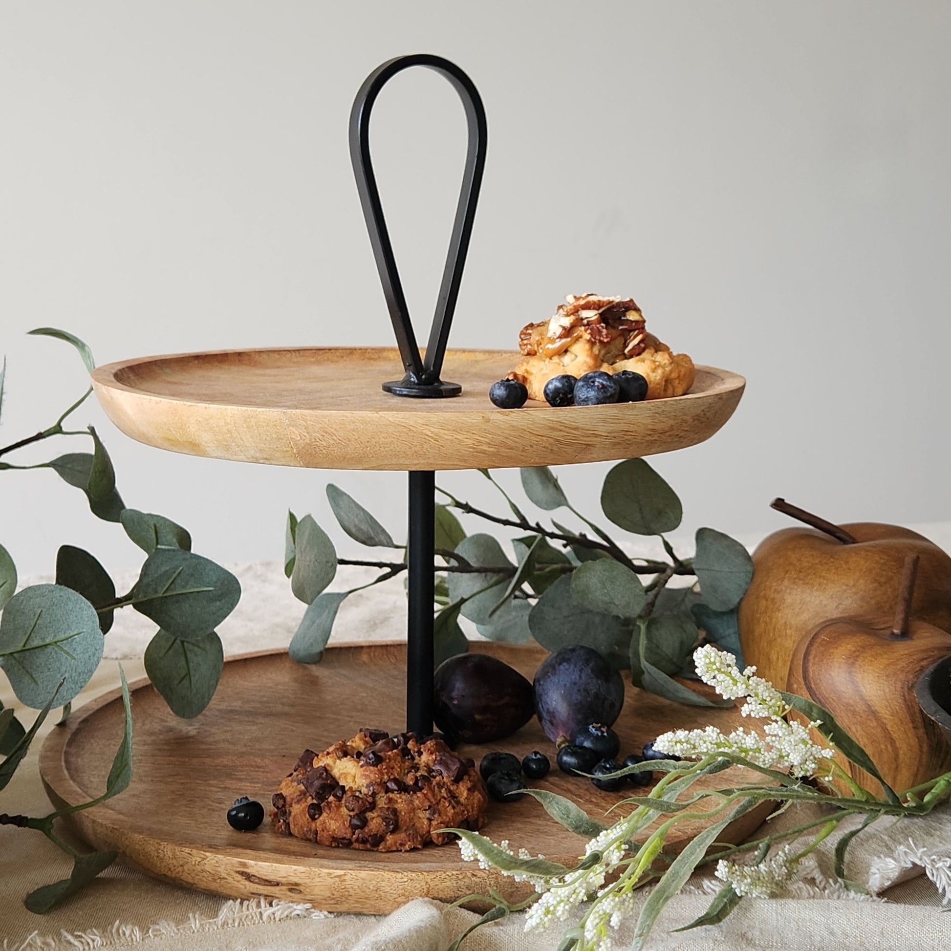 Nuestra bandeja Kabir de 2 niveles combina la calidez de la madera natural con la sofisticación del metal negro. El asa de metal negro no solo aporta un toque industrial, sino que también facilita su transporte. Perfecto para añadir un toque rústico pero elegante a tus mesas de café, buffets o eventos especiales. ¡Un elemento versátil y decorativo que no puede faltar en tu hogar!