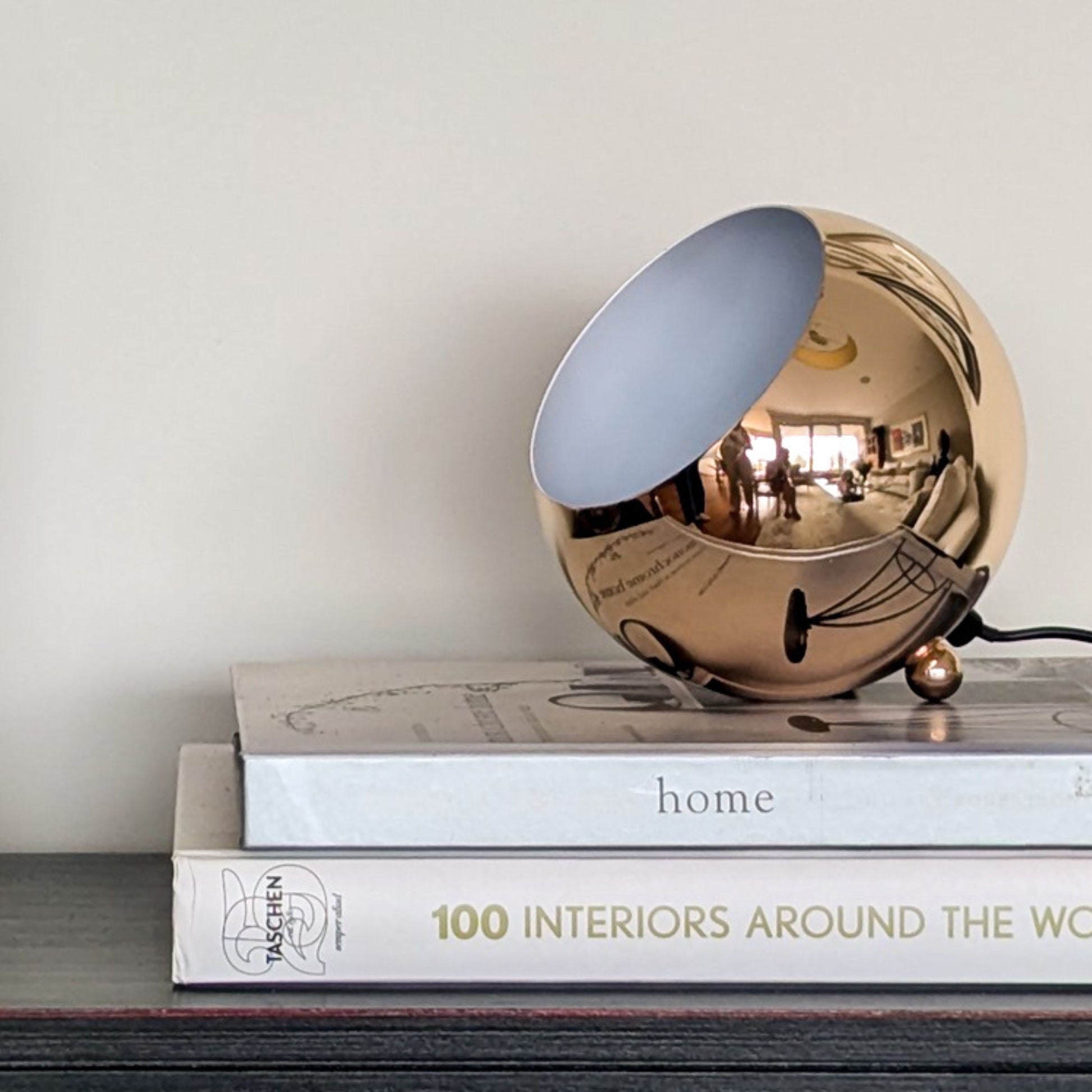 Esta lámpara esférica es un homenaje al icónico diseño Mid-Century Modern. Su pantalla dorada, un clásico de la época, difunde una luz suave y cálida que invita a la relajación. Perfecta para añadir un toque retro a cualquier espacio, desde una sala de estar hasta un rincón de lectura.