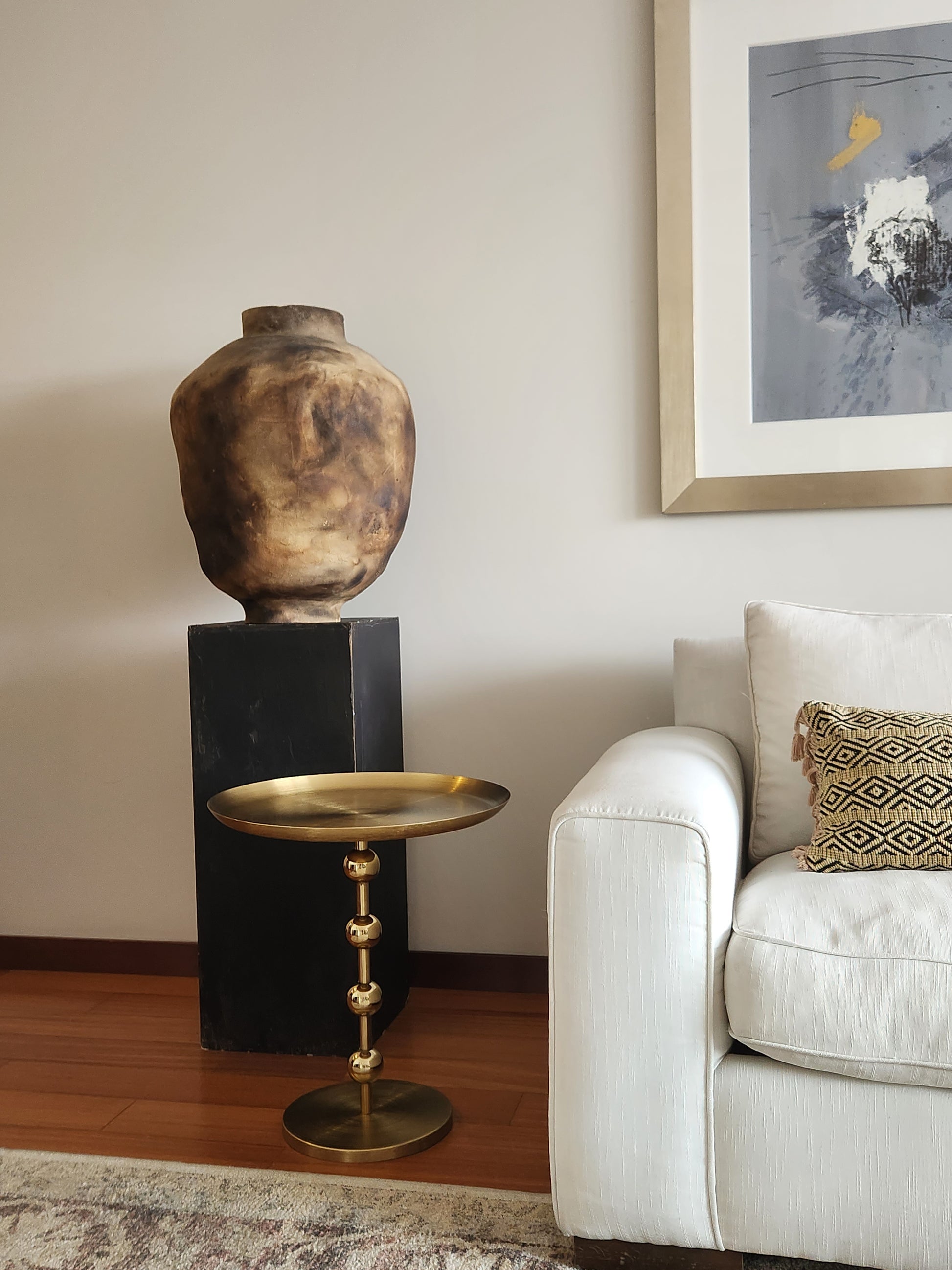 Añade un toque de sofisticación a cualquier espacio de tu hogar con la mesa auxiliar Majesty. Su diseño minimalista, realzado por detalles esféricos en la base, la convierte en una pieza decorativa única que se adapta armoniosamente a distintos estilos, desde moderno hasta clásico. Perfecta para complementar tu sala, dormitorio o rincón de lectura, esta mesa no solo es funcional, sino que también aporta un aire de elegancia y exclusividad a tu decoración.